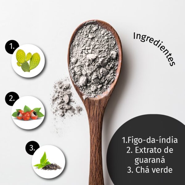 Fórmula de cinco ações com figueira-da-índia, extrato de guaraná, extrato de chá verde, casca de psyllium e inulina.