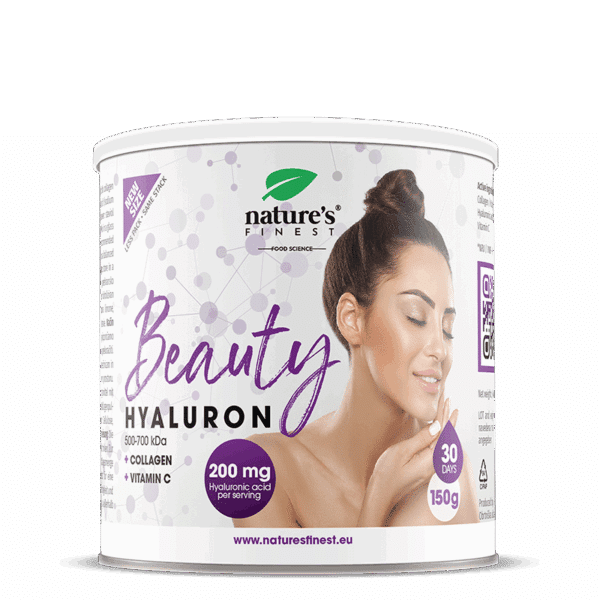 Beauty Hyaluron é um suplemento alimentar com ácido hialurônico, colágeno hidrolisado e vitamina C. É destinado a todos que desejam apoiar sua rotina diária de beleza com ingredientes que estão presentes naturalmente no corpo, mas que começam a faltar com o envelhecimento.
