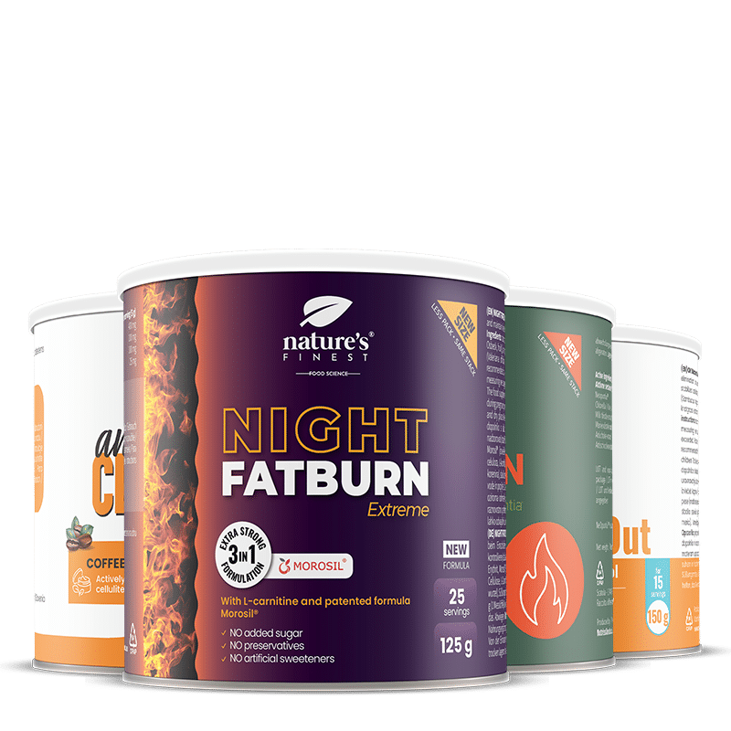 Night FatBurn Extreme (25 dias): à noite, cerca de 30 minutos antes de dormir, misture 5 g (1 dose) com 200 ml de água e beba.