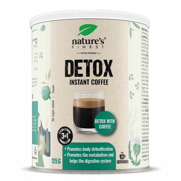 4 em 1: extracto eficaz de cardo mariano, extracto de alcachofra, clorela e café instantâneo.