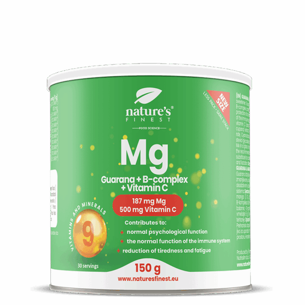 Magnésio + Guaraná + Complexo B + Vitamina C é para todos os que desejam ter mais energia, melhorar o seu funcionamento muscular e melhorar o sistema imunitário.