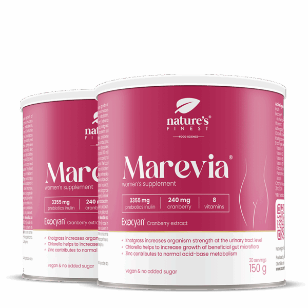 Sim. O Marevia contém o extrato de arando Exocyan™ e o extrato de Polygonum aviculare, conhecido pelos seus incríveis benefícios para o sistema urinário. O Polygonum estimula a eliminação de água do trato urinário e, de forma geral, aumenta a resistência do organismo ao nível do sistema urinário.
