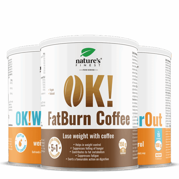 OK!FatBurn Coffee: Misture 10 g (1 colher de sopa) de OK!FatBurn Coffee numa chávena (150 ml) de água morna ou de leite (vegetal).