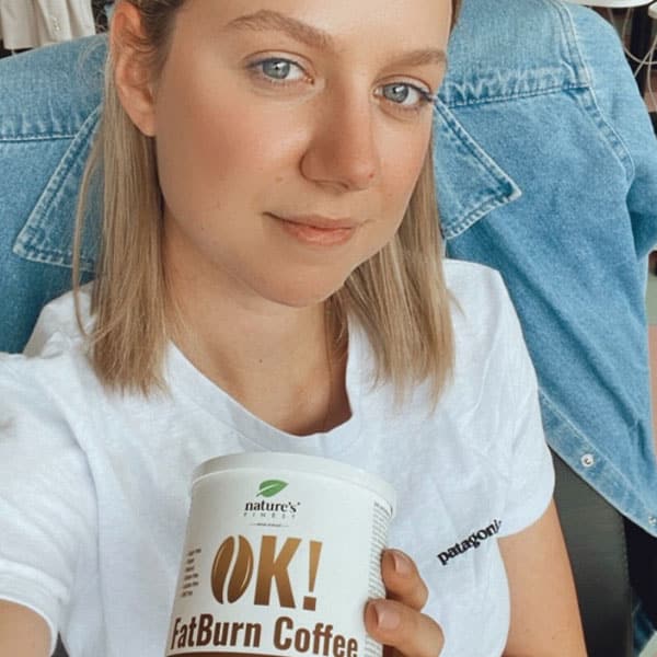 Misture 10 g (1 colher de sopa) da mistura OK!FatBurn Coffee em 150 ml de água morna ou leite (vegetal).
