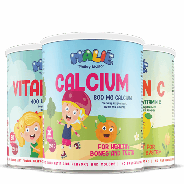 MALIE Cálcio tem um excelente sabor refrescante a laranja. Malie Vitamina C tem um sabor incrível a limonada. A vitamina D3 da MALIE tem um sabor suculento de morango.
