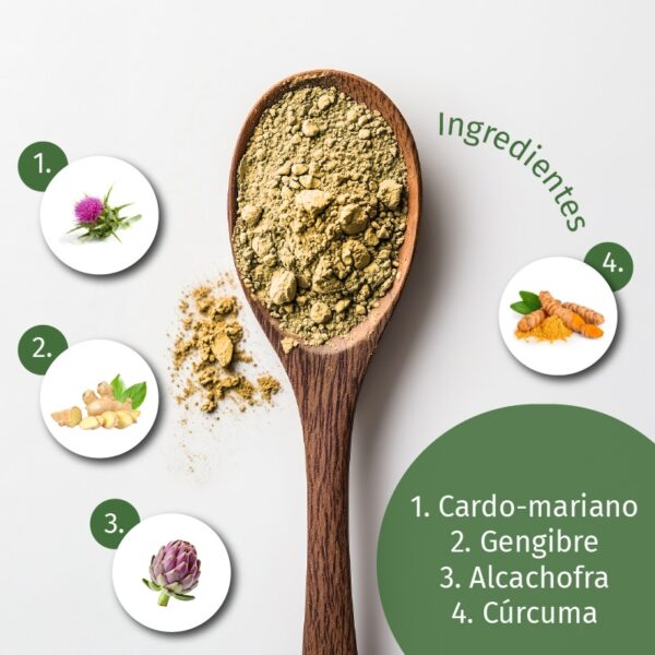 Inulina em pó, adoçante eritritol, açafrão-da-terra (Curcuma Longa) em pó, aroma de laranja (3%), canela (Cinnamomum zeylanicum) em pó, gengibre (Zingiber officinale) em pó, extrato de cardo mariano (Silybum marianum) (1,5%), extrato de alcachofra (Cynara scolymus L.) (0,25%).
