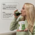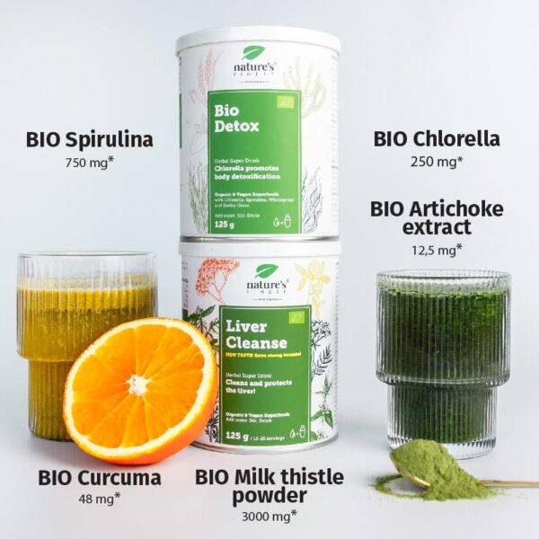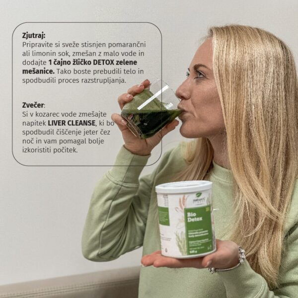 De manhã, misture 1 colher de chá (5g) da mistura verde DETOX em um suco de laranja ou limão espremido na hora misturado com água e beba. Isso despertará o corpo e estimulará a desintoxicação.