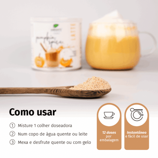 Misture 2 colheres de chá (10 g) de pó numa chávena (150 mL) de água morna.